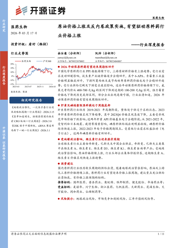 【开源证券】【202603】原油价格上涨及反内卷政策实施,有望驱动原料药行业价格上涨-11页