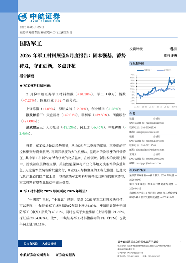 【中航证券】【202603】2026年军工材料展望&月度报告:固本强基,蓄势待发,守正创新,多点开花-21页