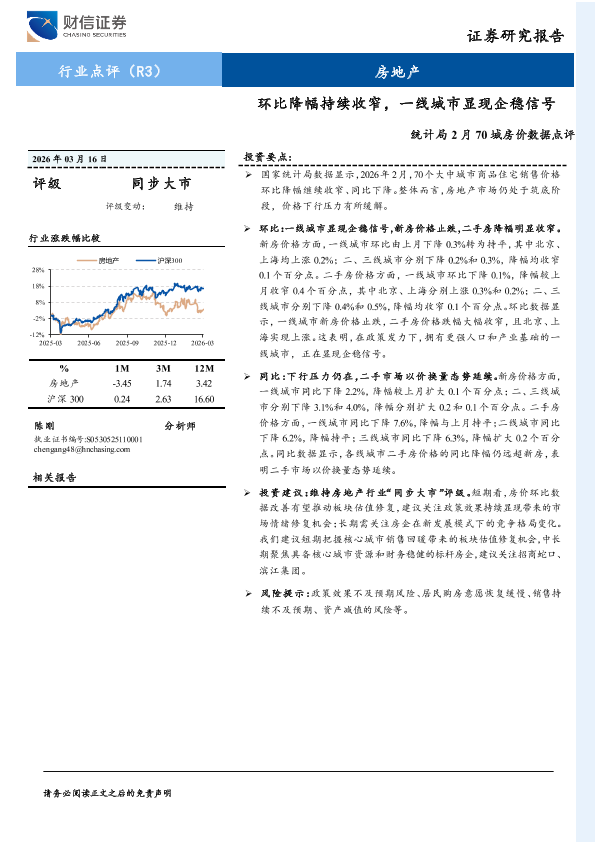 【财信证券】【202603】统计局2月70城房价数据点评:环比降幅持续收窄,一线城市显现企稳信号-2页