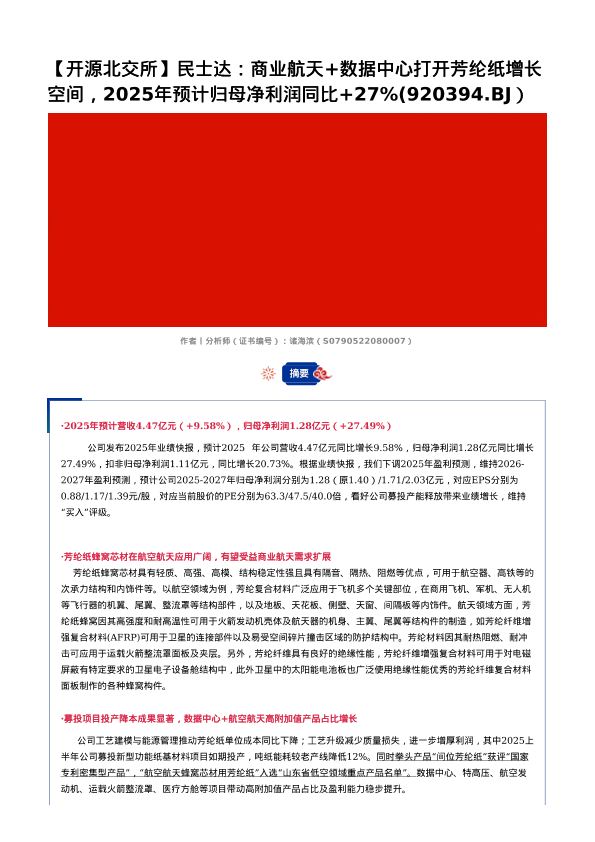 【开源证券】【2024】民士达_商业航天+数据中心打开芳纶纸增长空间,2025年预计归母净利润同比+27%(920394.BJ)-4页
