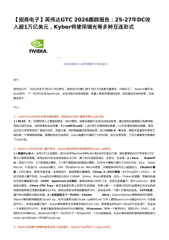 【海通证券】【202603】【招商电子】英伟达GTC_2026跟踪报告_25-27年DC收入超1万亿美元,Kyber将使用铜光等多种互连形式-38页