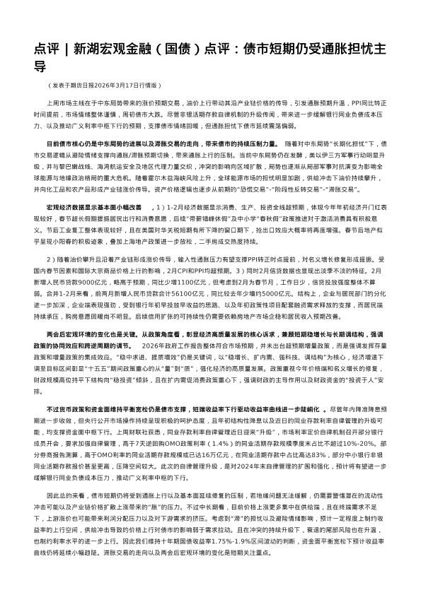【新湖期货研究所】【202603】新湖宏观金融(国债)点评:债市短期仍受通胀担忧主导-3页