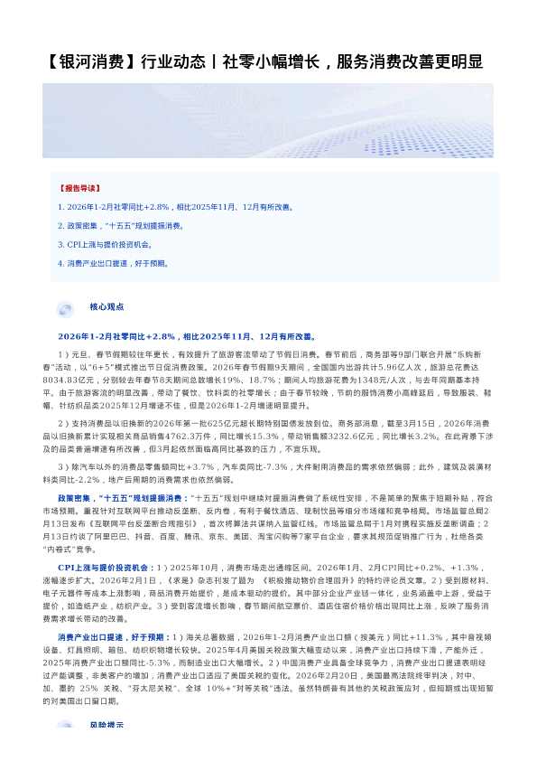 【银河证券】【202603】【银河消费】行业动态丨社零小幅增长,服务消费改善更明显-3页