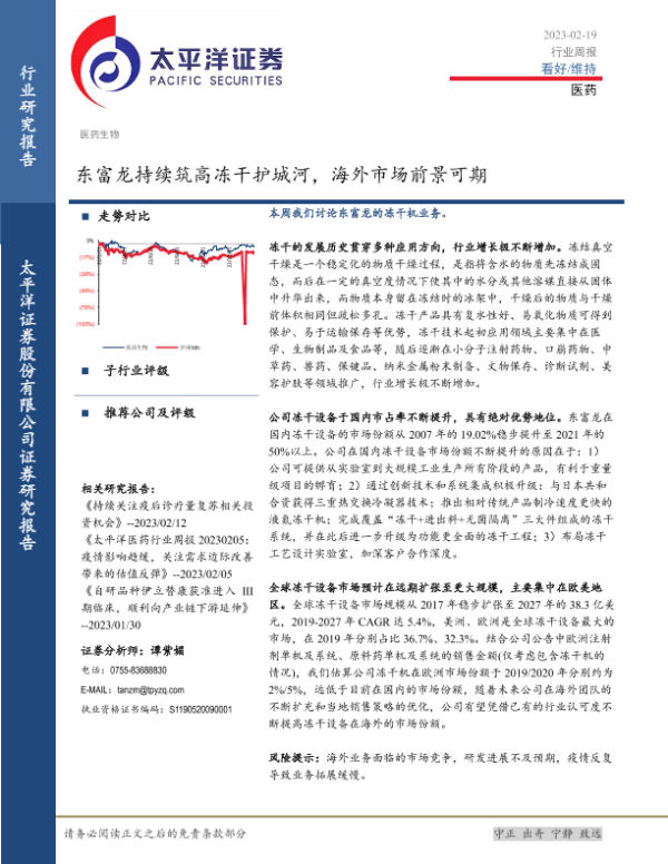 【太平洋证券】【20230219】医药生物行业周报:东富龙持续筑高冻干护城河,海外市场前景可期-17页