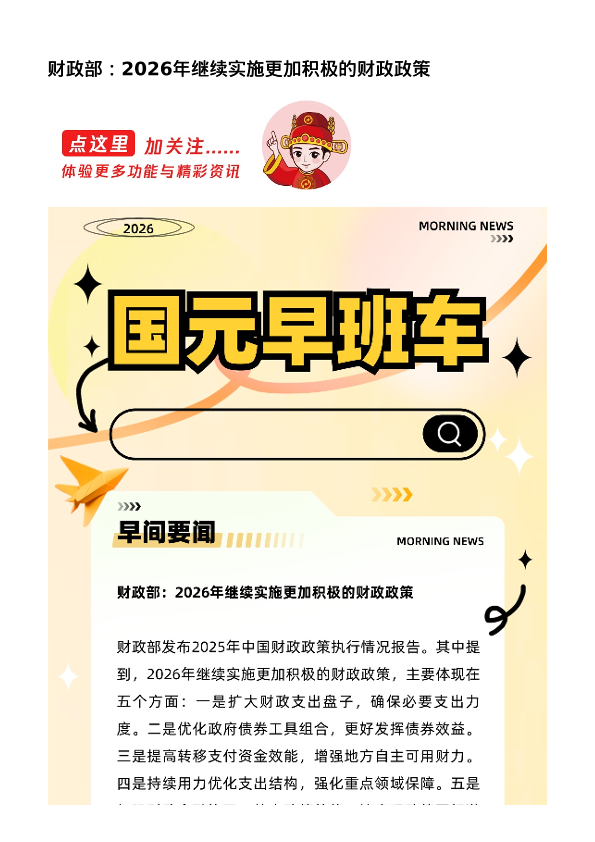 【国元证券】【202603】财政部 2026年继续实施更加积极的财政政策-7页