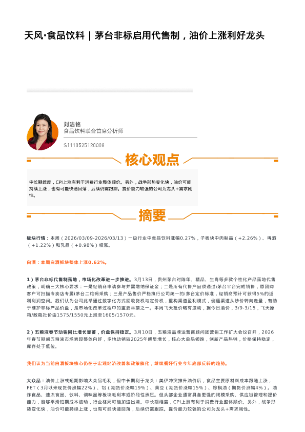 【天风证券】【202603】天风·食品饮料___茅台非标启用代售制,油价上涨利好龙头-2页