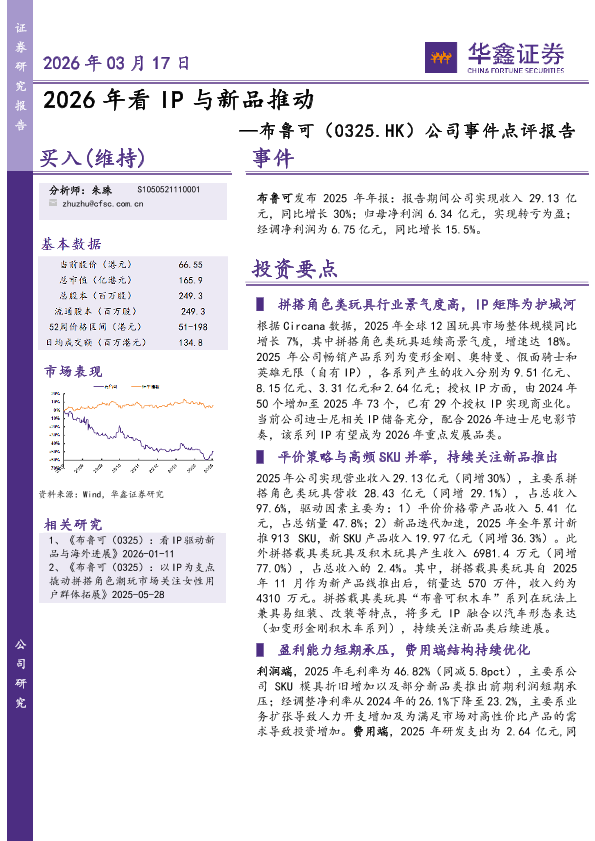 【华鑫证券】【202603】2026年看 IP与新品推动 — 布鲁可(0325.HK)公司事件点评报告-5页