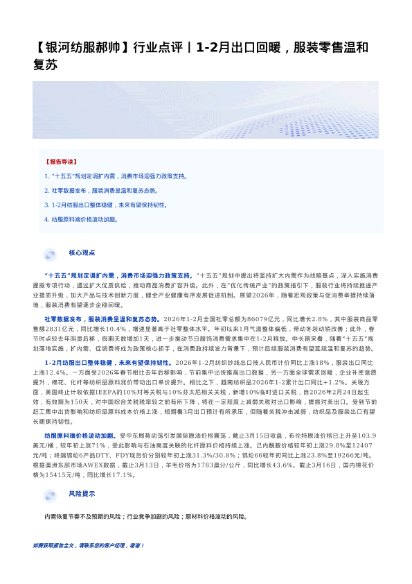 【银河证券】【202603】行业点评丨1-2月出口回暖,服装零售温和复苏-3页