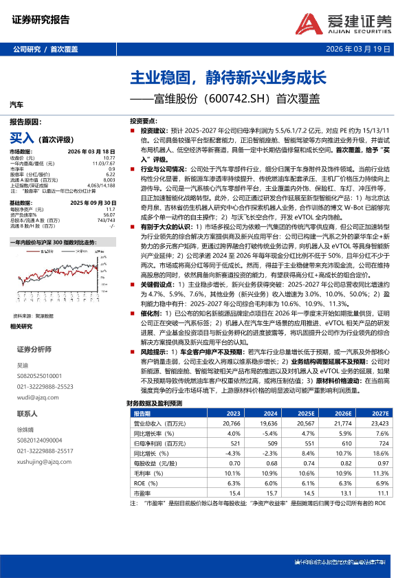 【爱建证券】【202603】主业稳固,静待新兴业务成长——富维股份(600742.SH)首次覆盖-6页