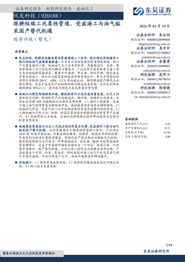 【东吴证券】【202603】深耕极端工况柔性管道,受益海工与油气钻采国产替代机遇-19页