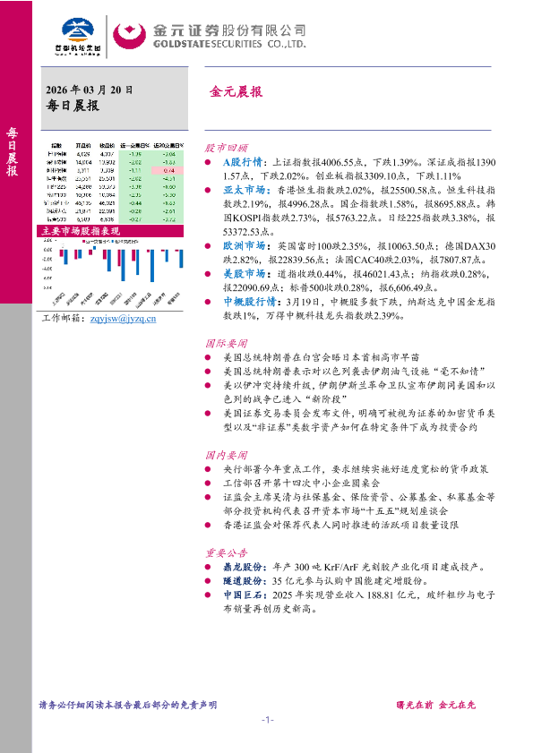 【金元证券】【202603】2026年03月20日每日晨报-6页