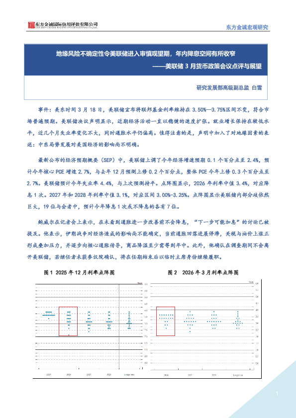 【东方金诚】【2024】地缘风险不确定性令美联储进入审慎观望期,年内降息空间有所收窄——美联储 3月货币政策会议点评与展望-4页