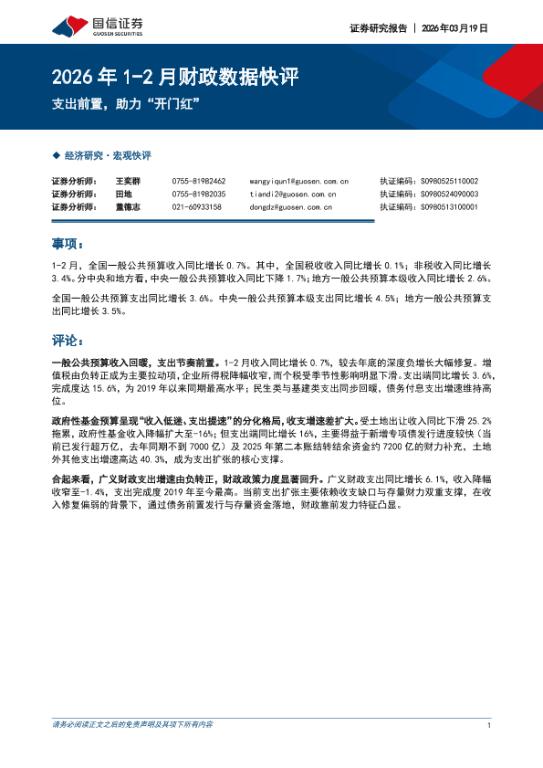 【国信证券】【202603】2026年1-2月财政数据快评:支出前置,助力“开门红”-8页