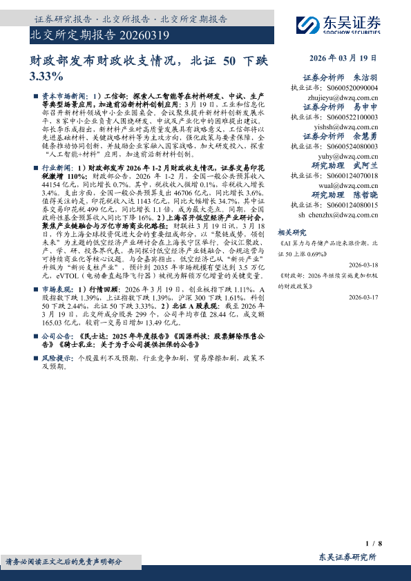 【东吴证券】【202603】财政部发布财政收支情况,北证 50下跌3.33%-8页