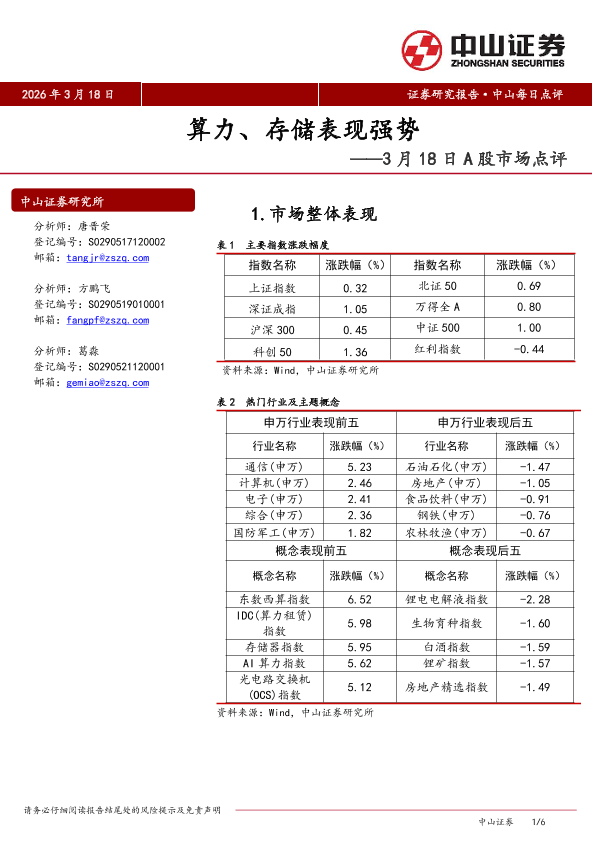 【中山证券】【202603】算力、存储表现强势——3月18日 A股市场点评-6页