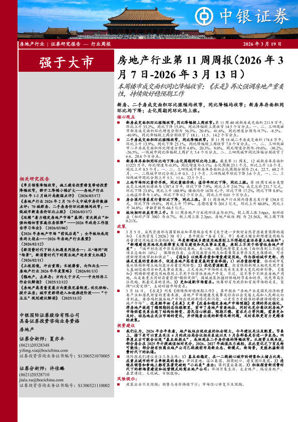 【中银证券】【202603】房地产行业第11周周报(2026年 3月 7日-2026年 3月 13日)-26页