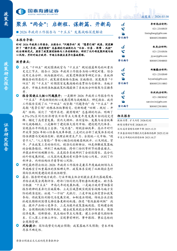 【国泰海通证券】【2026】2026年政府工作报告与“十五五”发展战略深度解读-聚焦“两会”:启新程、谋新篇、开新局-33页