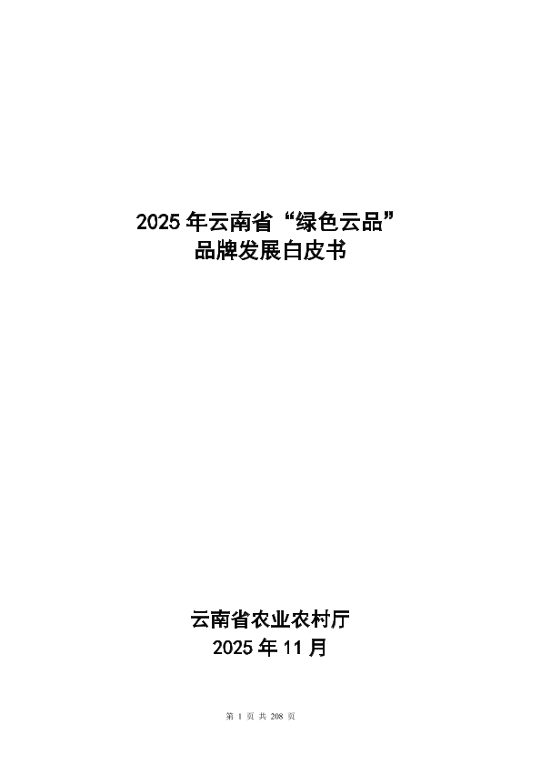 【云南省农业农村厅】【202503】2025年云南省“绿色云品”品牌发展白皮书-208页