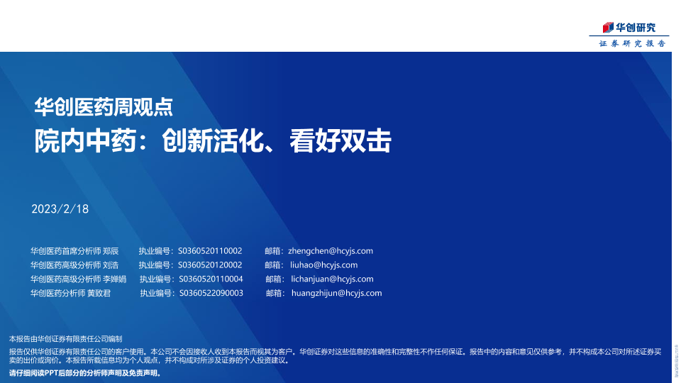 【华创证券】【20230218】华创医药周观点:院内中药:创新活化、看好双击-27页