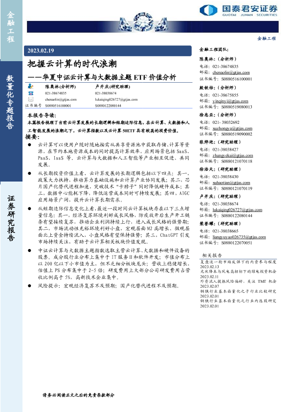 【国泰君安证券】【20230219】华夏中证云计算与大数据主题ETF价值分析:把握云计算的时代浪潮-24页