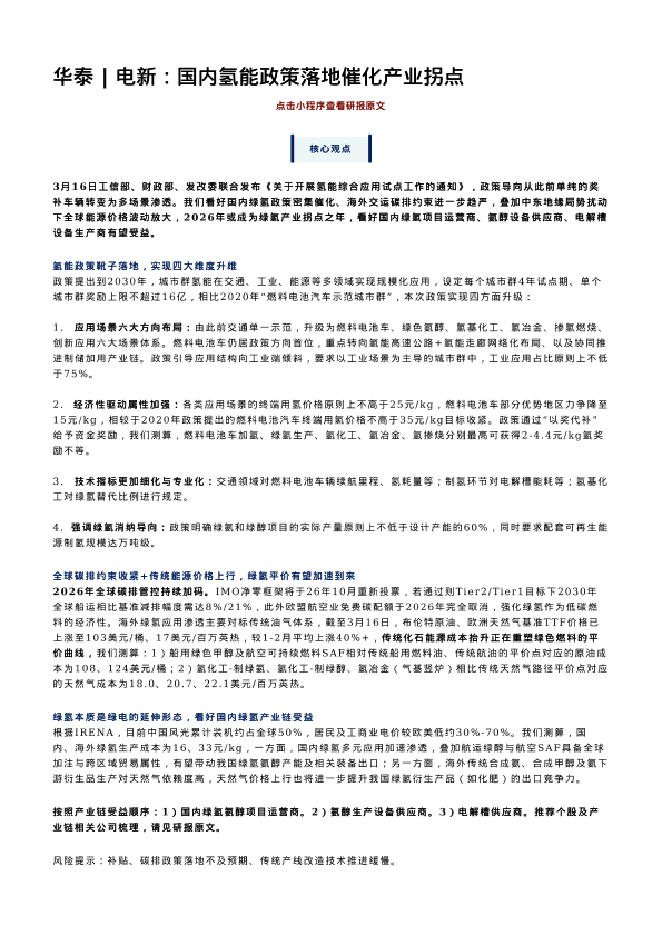 【华泰证券】【202603】国内氢能政策落地催化产业拐点-5页