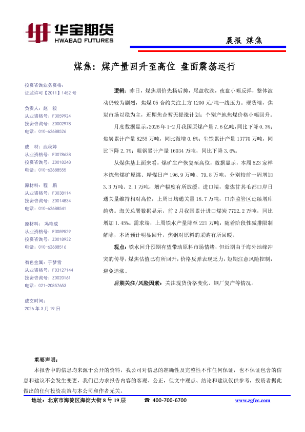 【华宝期货】【202603】煤焦_煤产量回升至高位_盘面震荡运行-1页