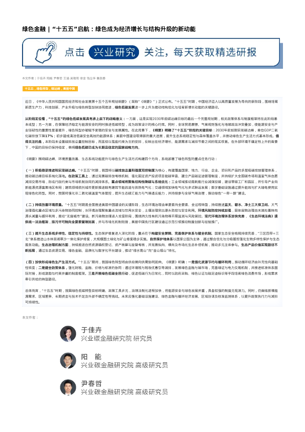 【兴业研究】【2023】绿色金融|“十五五”启航:绿色成为经济增长与结构升级的新动能-5页