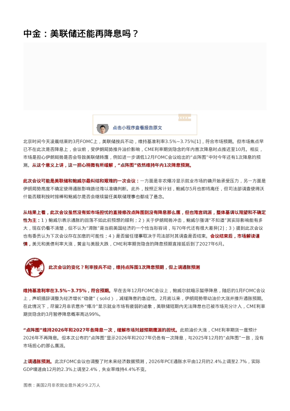 【中金公司】【202603】美联储还能再降息吗?-8页