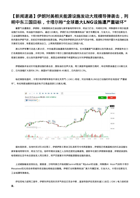 【英大期货】【202603】伊朗对美相关能源设施发动大规模导弹袭击_列明中东三国目标_卡塔尔称_全球最大LNG设施遭严重破坏-5页
