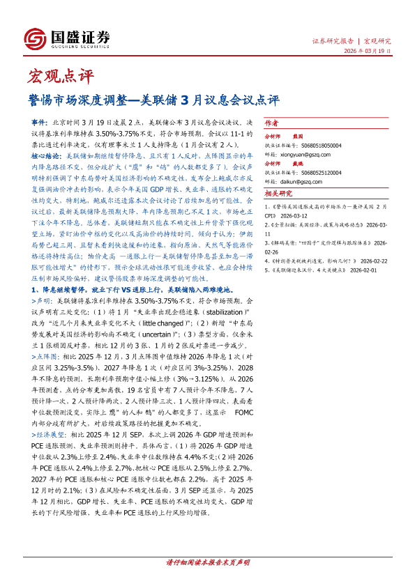 【国盛证券】【202603】警惕市场深度调整—美联储 3月议息会议点评-7页
