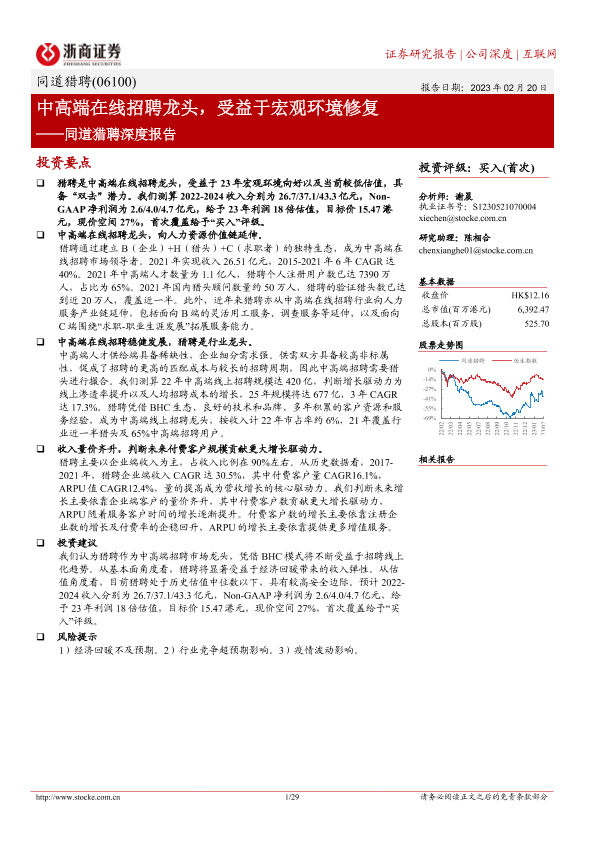 【浙商证券】【20230220】同道猎聘深度报告:中高端在线招聘龙头,受益于宏观环境修复-29页