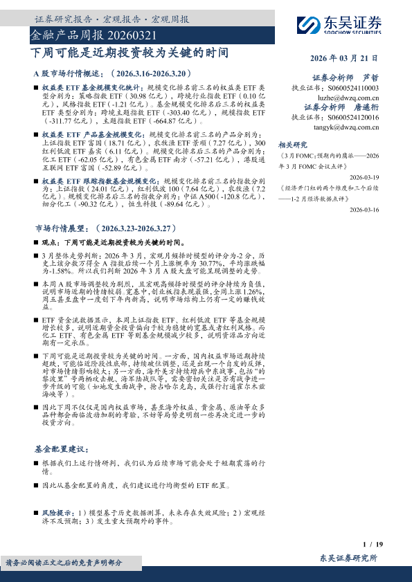 【东吴证券】【202603】金融产品周报 20260321-19页