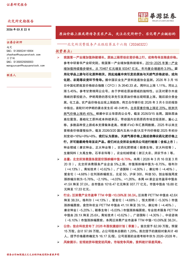 【华源证券】【202603】原油价格上涨或将传导至农产品,关注北交所种子、农化等产业链标的——北交所消费服务产业跟踪第五十六期(20260322)-17页