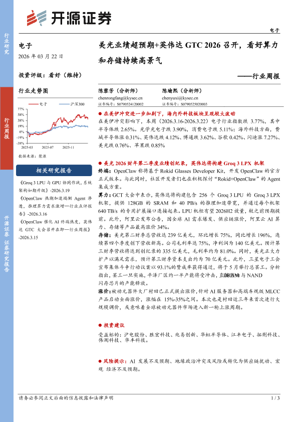【开源证券】【202603】美光业绩超预期+英伟达GTC 2026召开,看好算力和存储持续高景气-3页