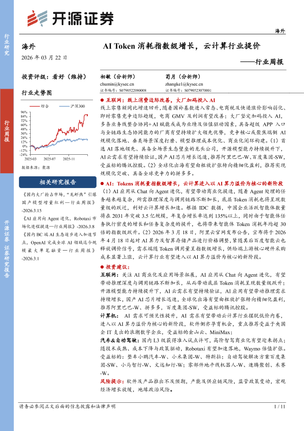 【开源证券】【202603】AI Token消耗指数级增长,云计算行业提价-11页