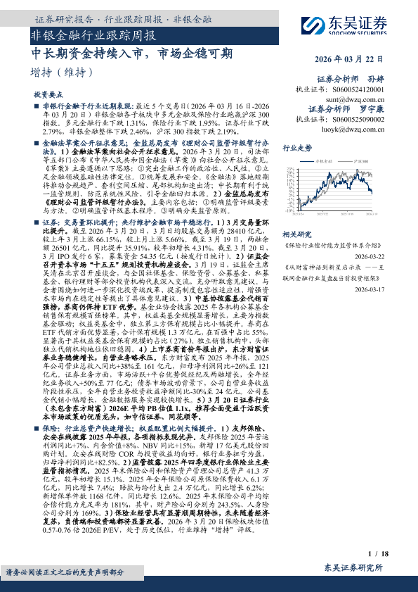【东吴证券】【202603】非银金融行业跟踪周报·中长期资金持续入市,市场企稳可期-18页