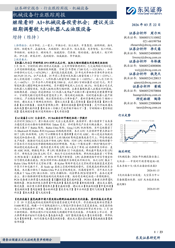 【东吴证券】【202603】继续看好AI+机械设备投资机会;建议关注短期调整较大的机器人&油服设备-23页