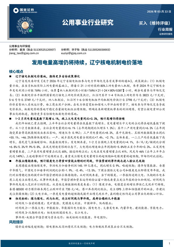国金证券 电力热力燃气水生产 2026年 PDF 1.13 MB