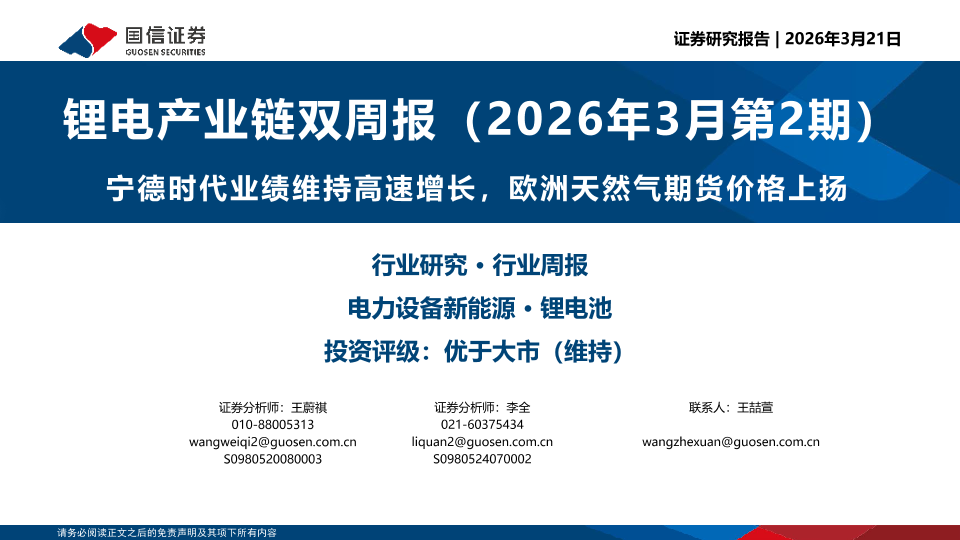 【国信证券】【202603】锂电产业链双周报(2026年3月第2期)-21页