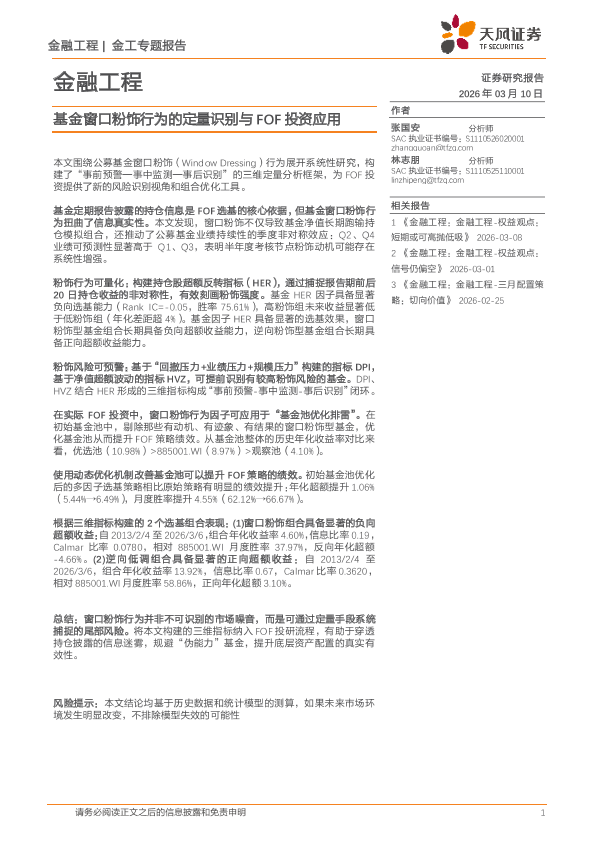 【天风证券】【202603】基金窗口粉饰行为的定量识别与FOF投资应用-25页