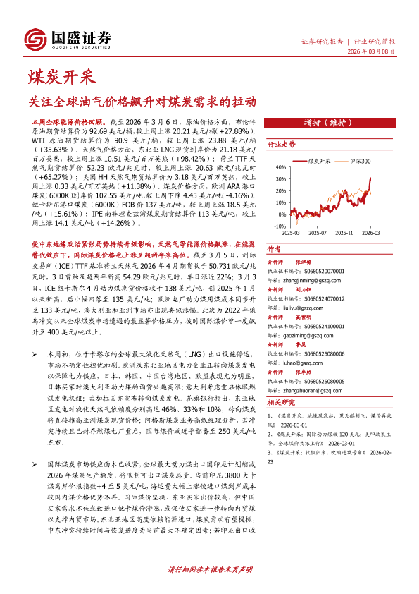 【国盛证券】【202603】煤炭开采行业研究简报:关注全球油气价格飙升对煤炭需求的拉动-12页