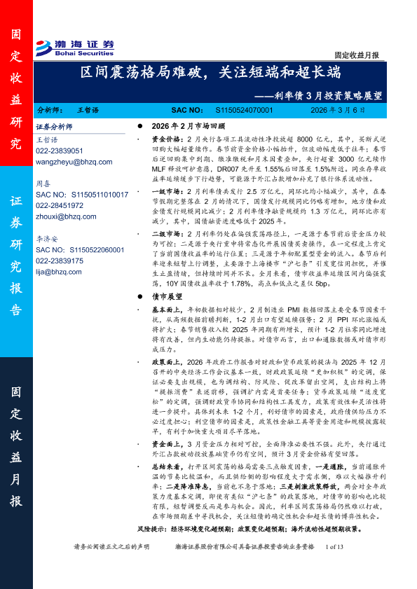【渤海证券】【202603】区间震荡格局难破,关注短端和超长端-13页