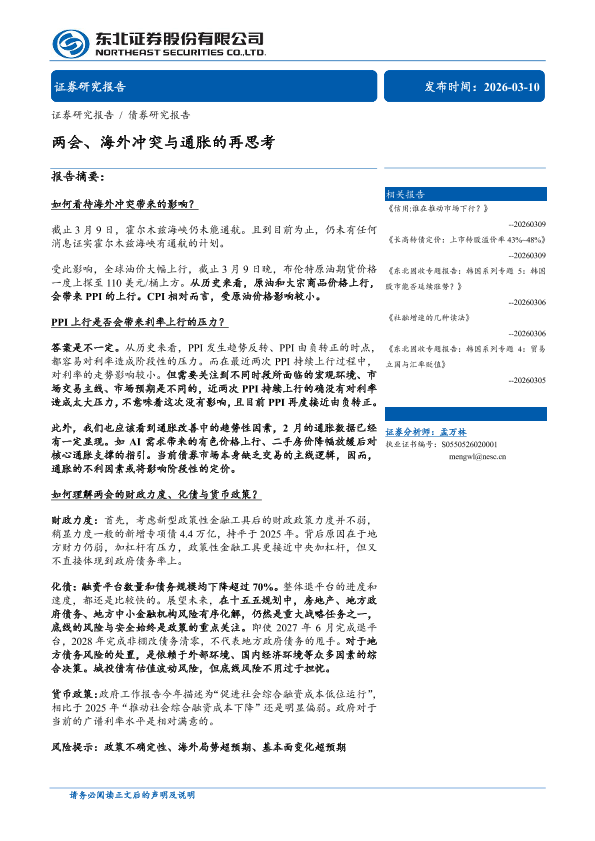 【东北证券】【202603】两会、海外冲突与通胀的再思考-11页