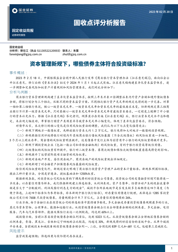 【国金证券】【20230220】固收点评分析报告:资本管理新规下,哪些债券主体符合投资级标准?-17页