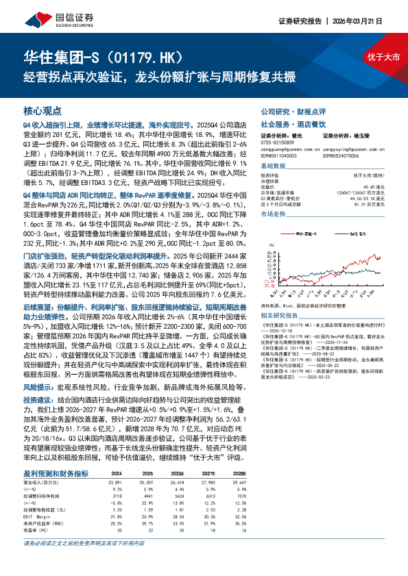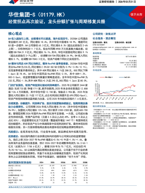 酒店行业 RevPAR 华住集团 股东回报 轻资产模式
