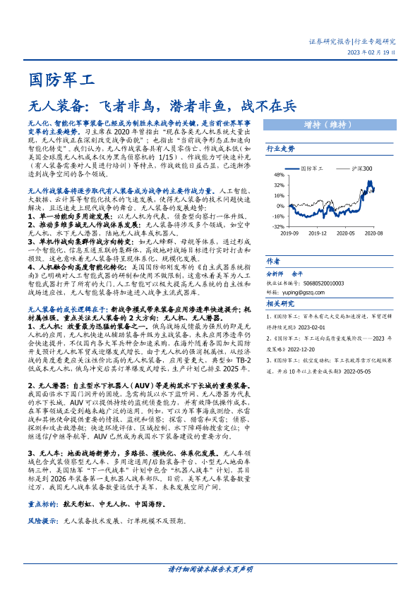 【国盛证券】【20230219】国防军工行业:无人装备,飞者非鸟,潜者非鱼,战不在兵-16页