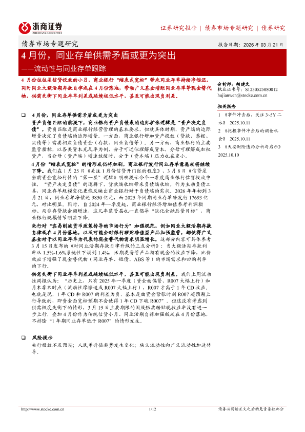 【浙商证券】【202603】4月份,同业存单供需矛盾或更为突出——流动性与同业存单跟踪-12页