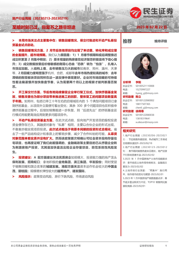 【民生证券】【20230222】地产行业周报:至暗时刻已过,但复苏之路非坦途-23页