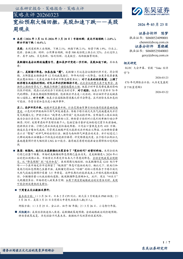 【东吴证券】【202603】宽松预期大幅回撤,美股加速下跌——美股 周观点-7页