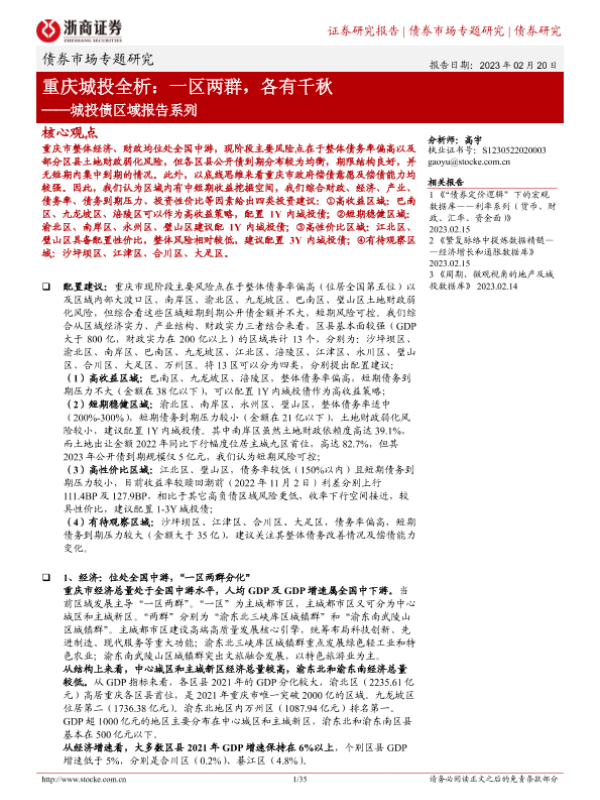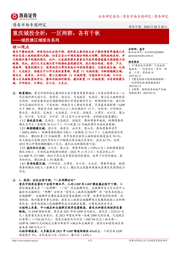 【浙商证券】【20230220】城投债区域报告系列:重庆城投全析,一区两群,各有千秋-35页